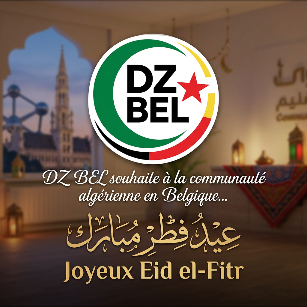 DZ BEL souhaite à toute la communauté algérienne de Belgique un Aïd el-Fitr béni, placé sous le signe de la paix, du partage et de la fraternité. Que cette fête apporte joie, sérénité et bénédictions à chacun ainsi qu’à vos familles.